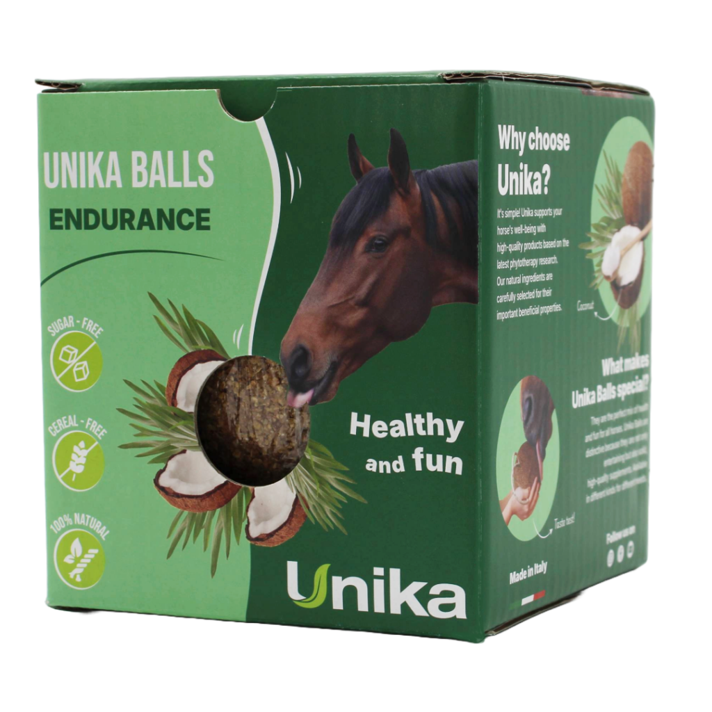 La sua funzione non è solo quella di intrattenere il cavallo, ma permette anche di aggiungere alla sua dieta giornaliera importanti sostanze come piante officinali, elettroliti, vitamine, minerali e molto altro in un modo totalmente nuovo. Siamo abituati infatti ad immaginare un mangime complementare come una polvere o un liquido che viene aggiunto alla razione alimentare quotidiana all’interno della mangiatoia, mentre Unika Balls stravolge completamente questo concetto rappresentando una sorta di integratore sospeso!